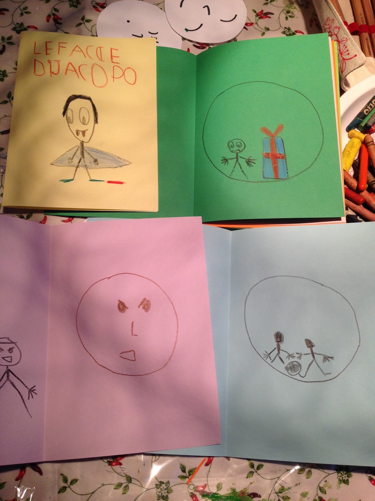 a partire da "à quoi penses-tu?" di laurent moreau, ed. hélium (in italiano tradotto e pubblicato da ed. orecchio acerbo) ci colleghiamo al lavoro dell'ultima volta e proviamo a raccontare che cosa ci provoca emozioni diverse: che cosa ti rende felice? che cosa ti spaventa? che cosa ti annoia? e così via.. ecco qualche esempio! sempre sorprendenti i collegamenti che fanno i bimbi..